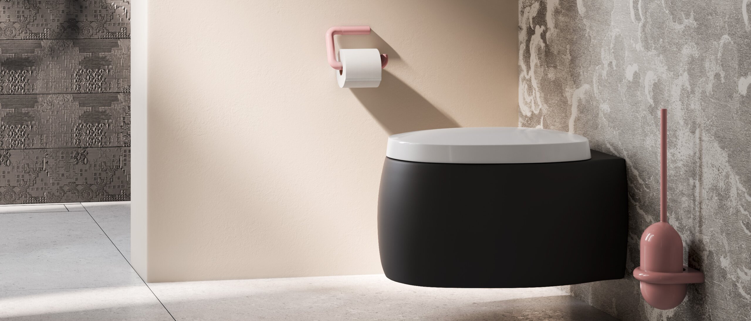 Die Kollektion umfasst neben Rosa auch Elemente in Weiß und Schwarz. Alle drei Farbtöne sind gezielt aufeinander abgestimmt und lassen sich individuell kombinieren. Weiß bringt Helligkeit und architektonische Klarheit, Schwarz sorgt für Tiefe und markante Akzente. So entstehen Kontraste, die bewusst von subtil bis grafisch gesetzt werden können, ohne die gestalterische Ruhe zu verlieren.