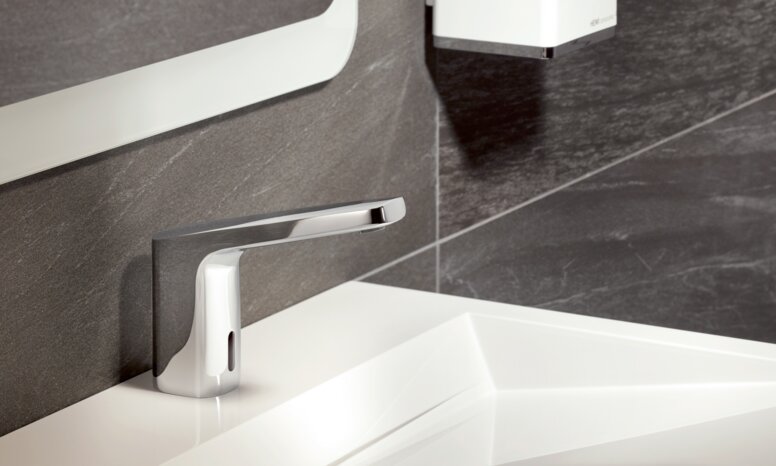 • Sensorgesteuerte Armaturen: Diese Armaturen lösen den Wasserfluss durch eine Handbewegung aus und stoppen diesen nach einem voreingestellten Zeitintervall automatisch. Dies vereinfacht die Handhabung und Menschen mit körperlichen Beeinträchtigungen erhalten die Chance, ihren Alltag selbstbestimmt zu gestalten. Auch ein Plus an Hygiene bieten sensorgesteuerte Varianten. Durch den Verzicht auf Berührungen der Armaturenkörper übertragen sich Krankheitserreger schlechter und Infizierungen verringern sich. Ein weiterer Vorteil elektronischer Armaturen fernab der Barrierefreiheit liegt darin, dass diese aktiv die knappe Ressource Wasser schonen.