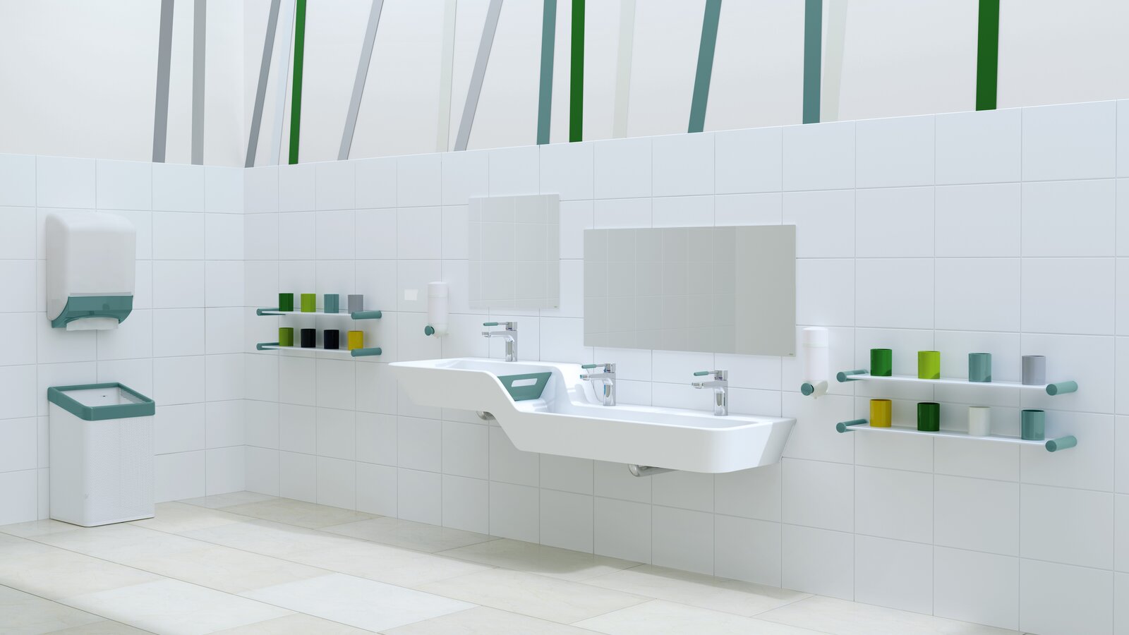 Kindgerechte Sanitärräume unterstützen bei der selbstständigen Handhygiene. Händewaschen und Zähneputzen machen doch gleich viel mehr Spaß, wenn die Waschplatzgestaltung an die Bedürfnisse der kleinen Nutzer angepasst ist. HEWI bietet ein Komplett-Sortiment rund um den Waschplatz, das mit fröhlichen Farben geradezu zum Waschen und Plantschen einlädt. Das Sortiment umfasst Waschtische, Spiegel, Armaturen, Zahnputzbecherleisten und Accessoires wie Seifenspender oder WC-Papierrollen-Halter. Eine hygienische Alternative zu Handtüchern stellen einzeln entnehmbare Papierhandtücher dar. Ausgewählte Produkte wie der Waschtisch sind nun neben neutralem Weiß oder fröhlichem Apfelgrün auch in frischem Aquablau verfügbar.