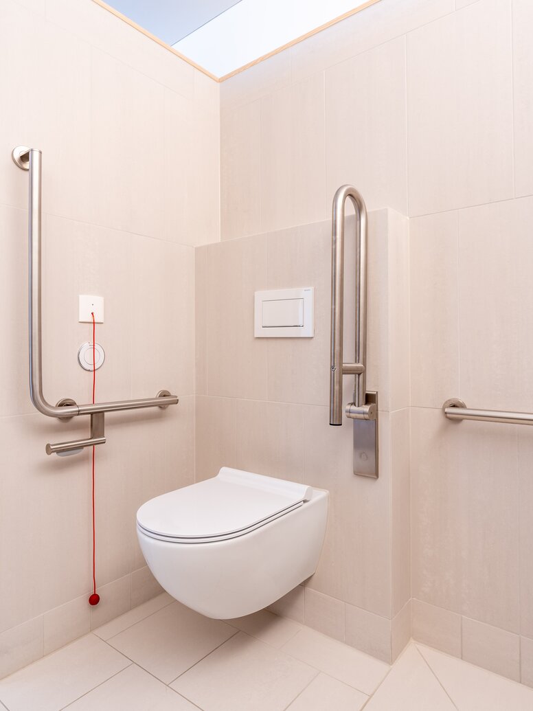 Im Rahmen der Modernisierung des Pflegeheims Jesuheim sorgen die barrierefreien HEWI Lösungen für mehr Selbstständigkeit und Sicherheit im Alltag der Bewohnerinnen und Bewohner.