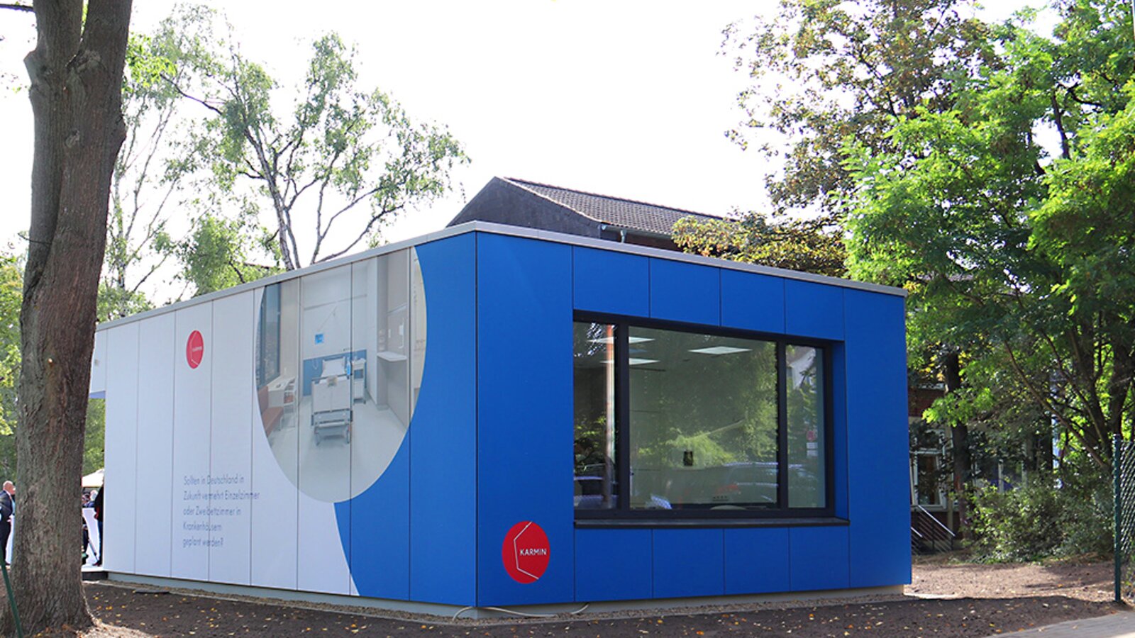 Der Prototyp des Patientenzimmers wurde im Projekt KARMIN entwickelt und auf dem Gelände der Charité im Rahmen des World Health Summit 2020 in Berlin ausgestellt. Jetzt wird der Demonstrator in ein neues anwendungsorientiertes Forschungs- und Studienlabor überführt. Die KooperationspartnerInnen – das Institut für Konstruktives Entwerfen, Industrie- und Gesundheitsbau (IKE) der TU Braunschweig, das Fraunhofer IST und das Städtische Klinikum Braunschweig – können damit Forschungsergebnisse in realer Umgebung direkt einbinden und unmittelbar erproben.