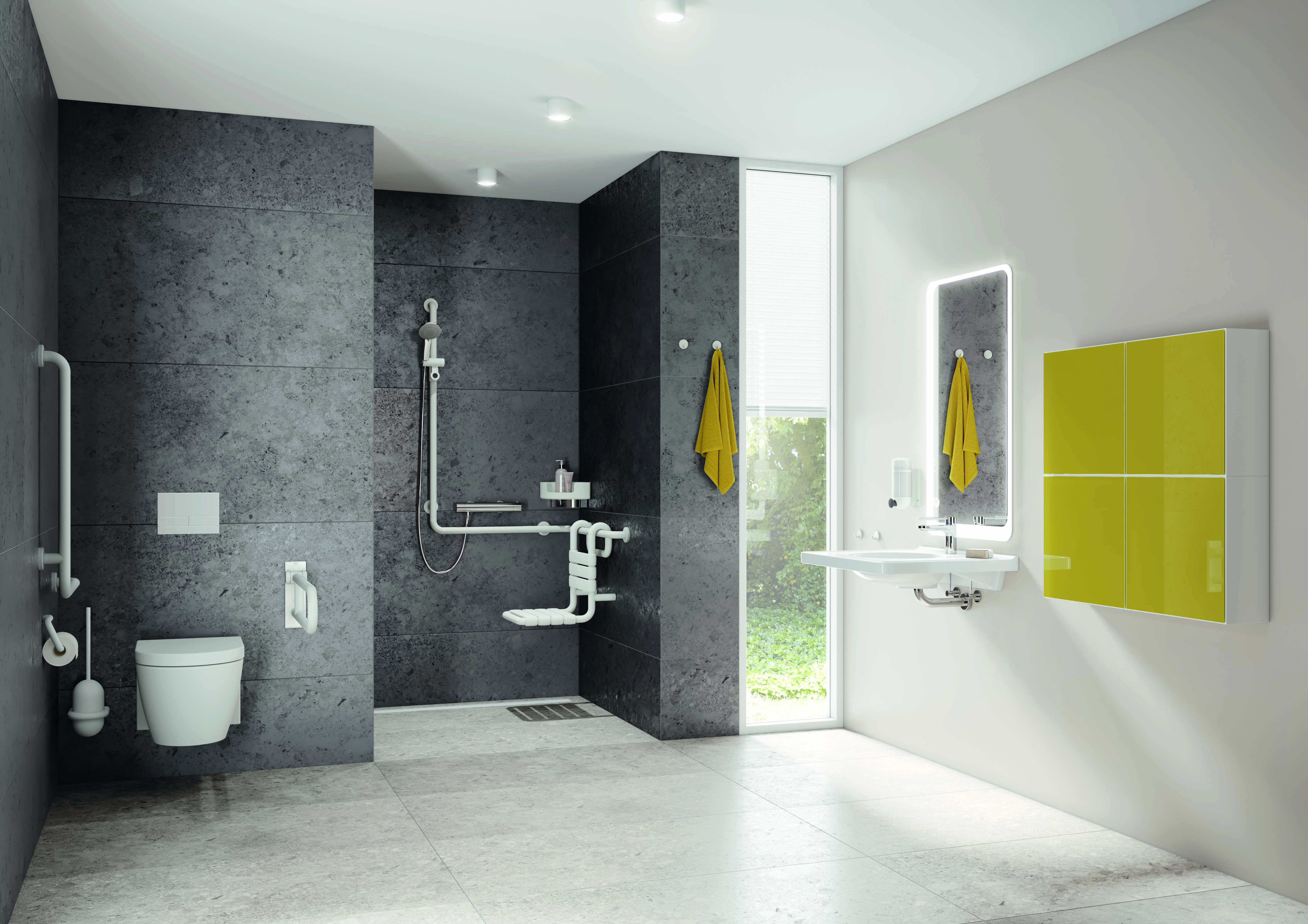 Das umfassende Sortiment vom Türdrücker über Sanitäraccessoires bis hin zu Komfortprodukten und barrierefreien Elementen ermöglicht eine konsequente Ausstattung, exakt ausgerichtet auf die individuellen Bedürfnisse der Nutzer. Das clevere Funktionsprodukt verleiht dem sanitären Raum in Krankenhäusern, Senioren- oder Pflegeheimen sowie zu Hause eine wohnliche Gestaltungsalternative.