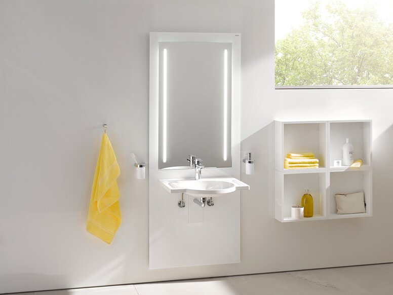 • Von Waschtisch über Accessoires bis hin zu Armaturen, Stützklappgriffen und -sitzen