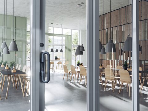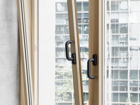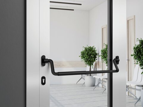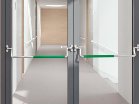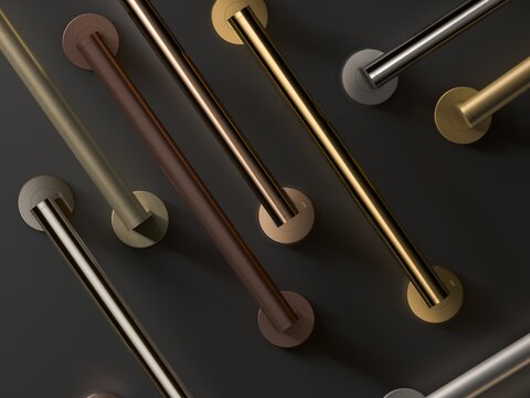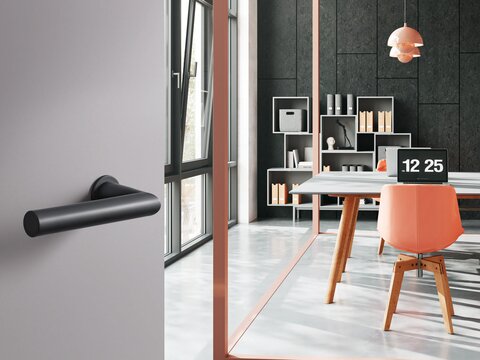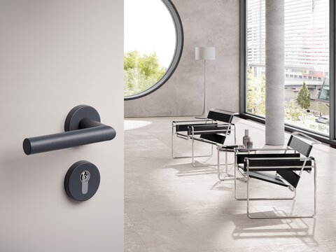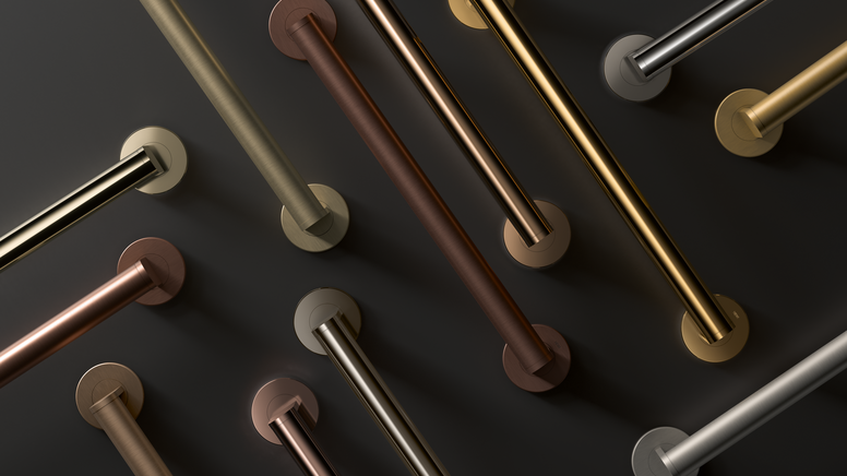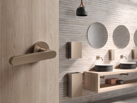 System 162 umfasst neben Sanitär-Accessoires ein umfangreiches Beschlagsortiment. Passend zu den Sanitärprodukten sind Türdrücker wahlweise aus Edelstahl oder Polyamid erhältlich.