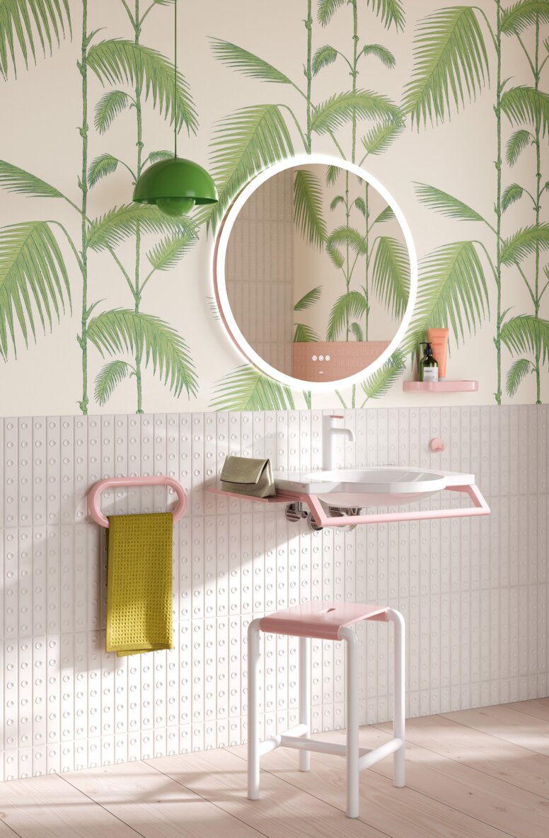 The Barbie™ x HEWI collection shows how consistent a washbasin can be when function and design are developed together. All the elements, from the washbasin to the fitting and mirror to the accessories, interlock and form a system that provides comfort and convenience for a wide range of users in everyday life.