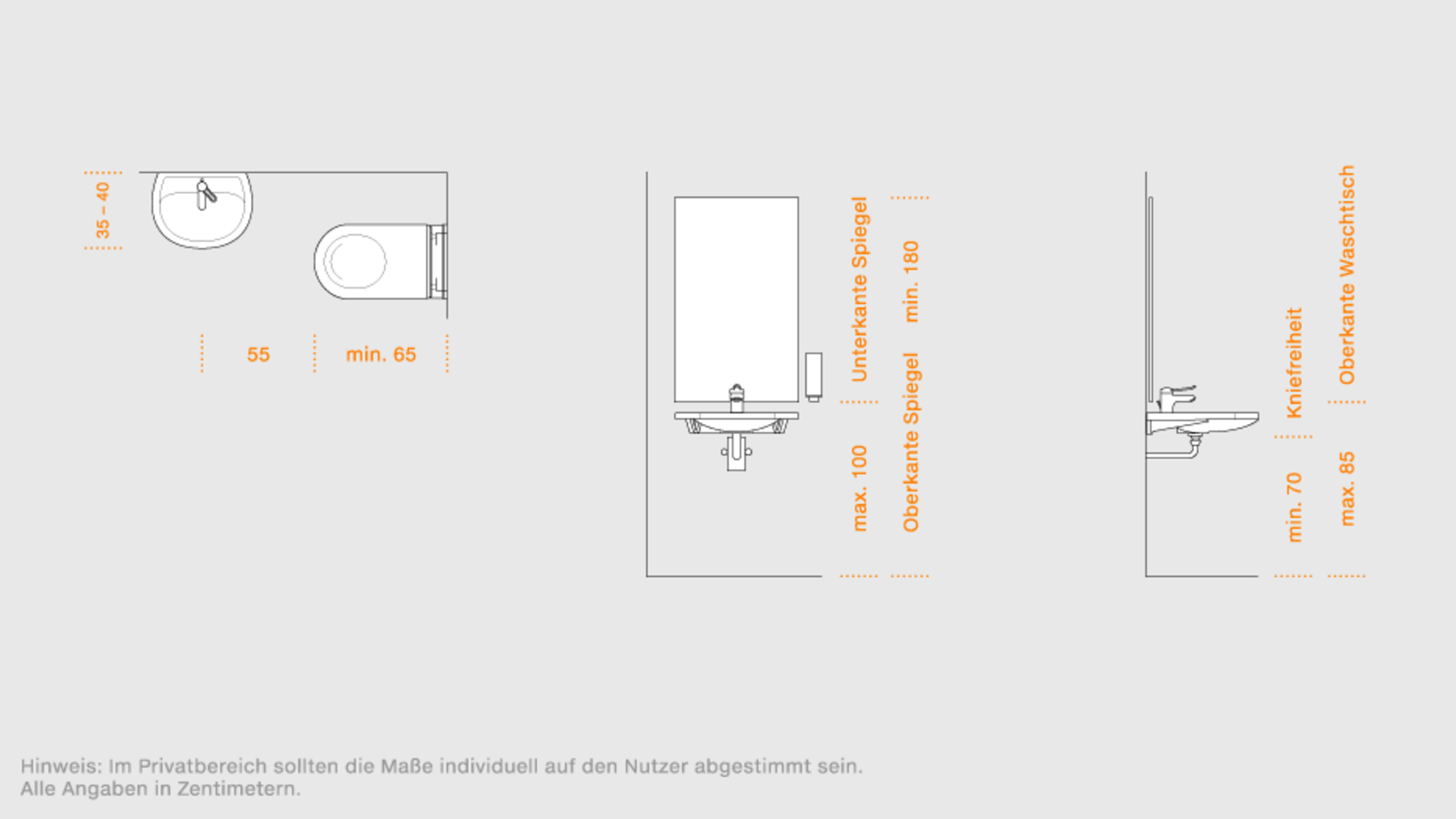 Dans la première partie de notre série ">Conseils de planification pour des espaces sanitaires sans barrières" nous nous sommes penchés sur la douche. Vous y trouverez entre autres des informations sur les zones de mouvement nécessaires dans les espaces sanitaires. Dans cet article, l'accent est mis sur la conception d'une zone de lavage sans obstacle. Découvrez les possibilités et les idées autour du lavabo.