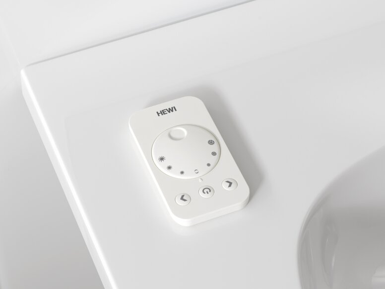 Zalety takiej umywalki są oczywiste: Indywidualnie regulowana wysokość umożliwia korzystanie z umywalki osobom o różnym wzroście. Umywalkę można w ciągu kilku sekund dopasować do indywidualnej wysokości za pomocą pilota, dzięki czemu nawet osoby siedzące lub poruszające się na wózkach inwalidzkich mogą zadbać o swoje ciało. Moduł S 50 firmy HEWI jest regulowany na przykład o 30 cm. Zaletą S 50 jest to, że cały moduł się porusza. Umywalka nie zasłania więc lustra który opcjonalnie dostępny jest w wersji niepodświetlonej lub z oświetleniem LED. Komfort bez barier jest możliwy po naciśnięciu jednego przycisku: Zarówno moduł WC jak i moduł umywalki napędzane są silnikiem, który umożliwia bezstopniową regulację wysokości. Moduł umywalki może utrzymać obciążenie do 150 kg.